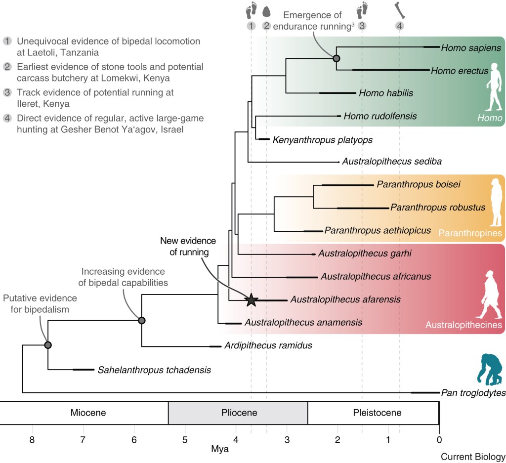 Abstract: “Endurance running is thought as critical for the evolutionary success of hominins. A new study analysing the running skills of the famous ‘Lucy’ – Australopithecus afarensis – finds that they performed poorer than modern humans, suggesting that key features of the human body plan evolved specifically to improve running performance.” – Wiseman, 2025.