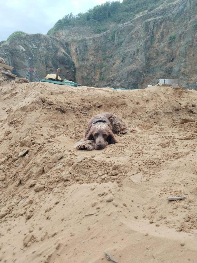 Dr Wiseman returned to Le Rozel for futher fieldwork at the rock-shelter site. It was a productive season! And it was made even better by the addition of the new site doggo!