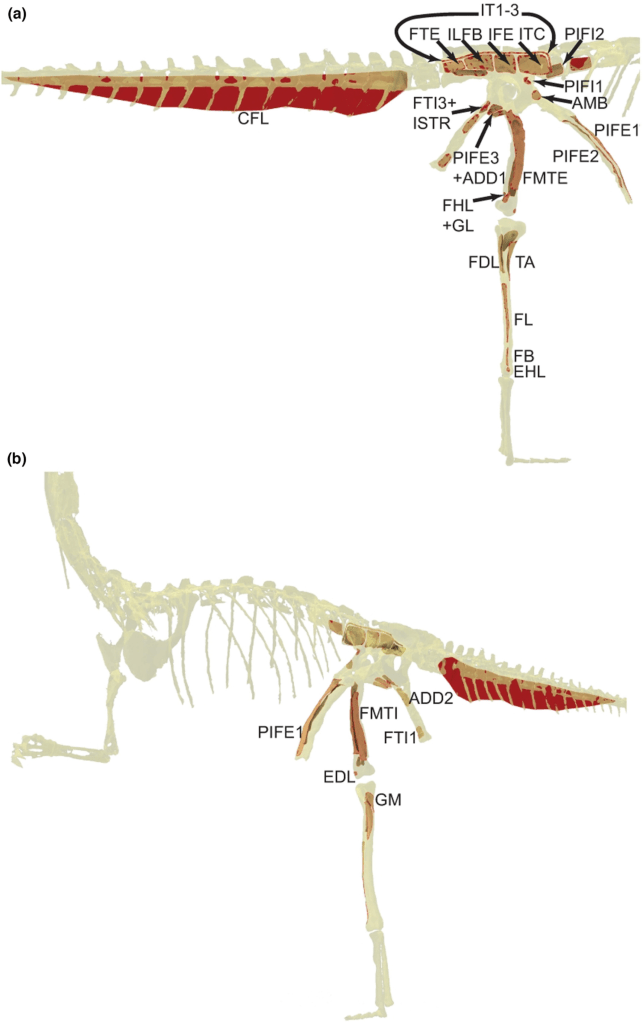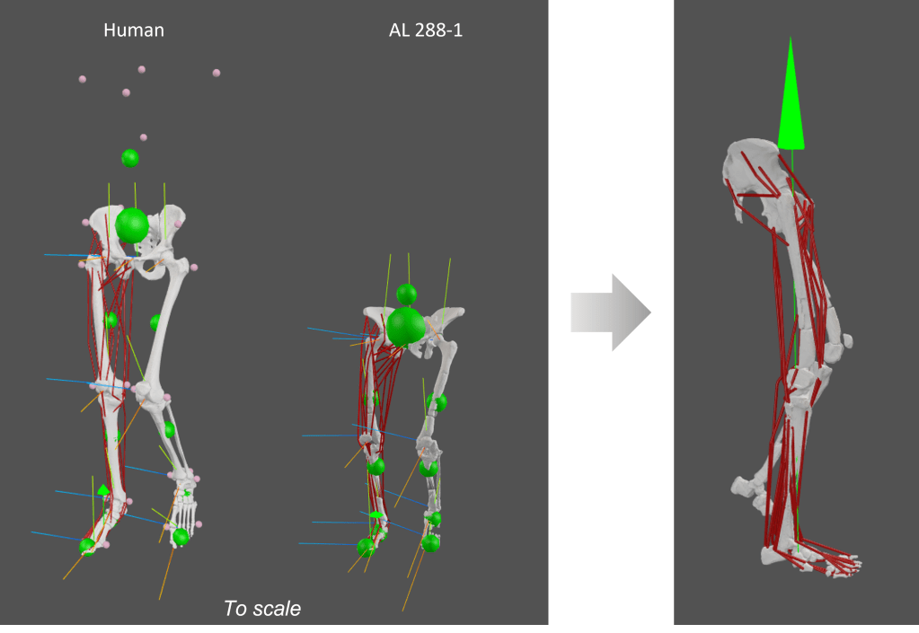 The team digitally reconstructed the muscles and tested their ability to support an upright, single-support limb posture.